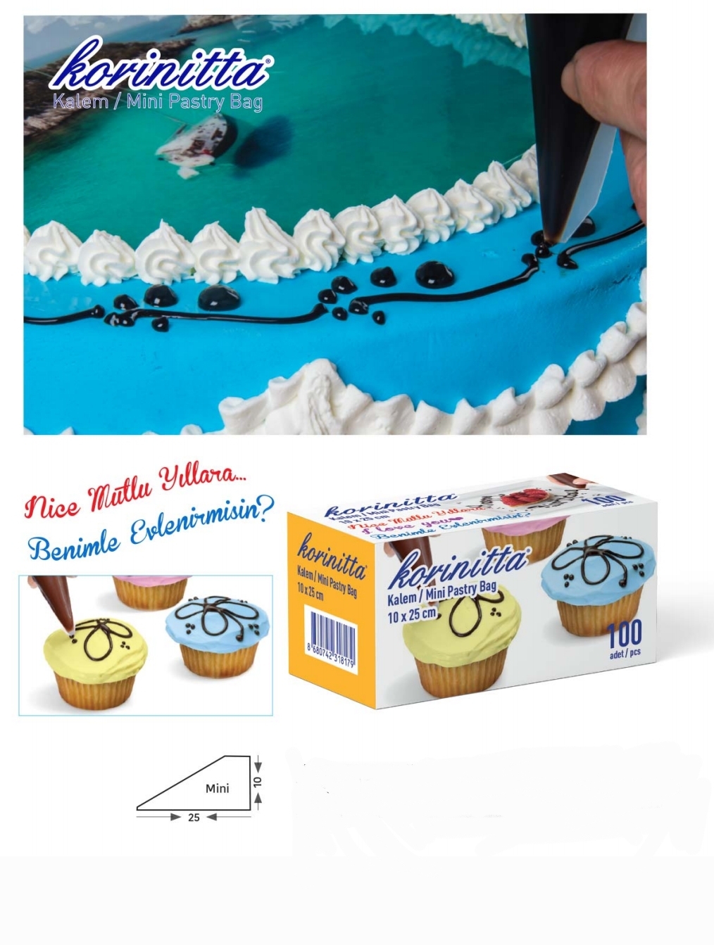 Korinitta Kalem Krema Sıkma Torbası 100lü