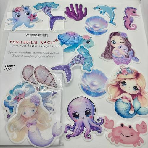 Hazır kesilmiş Yenilebilir Kağıt Wafer paper Deniz Kızı Tema